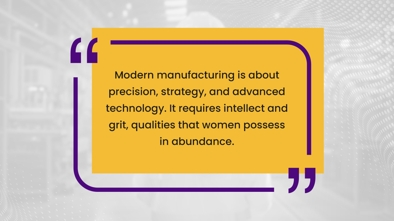 Modern manufacturing is about precision, strategy, and advanced technology. It requires intellect and grit, qualities that women possess in abundance. The ‘grease and gears’ stereotype is outdated; today’s plants are hubs of sophisticated engineering.